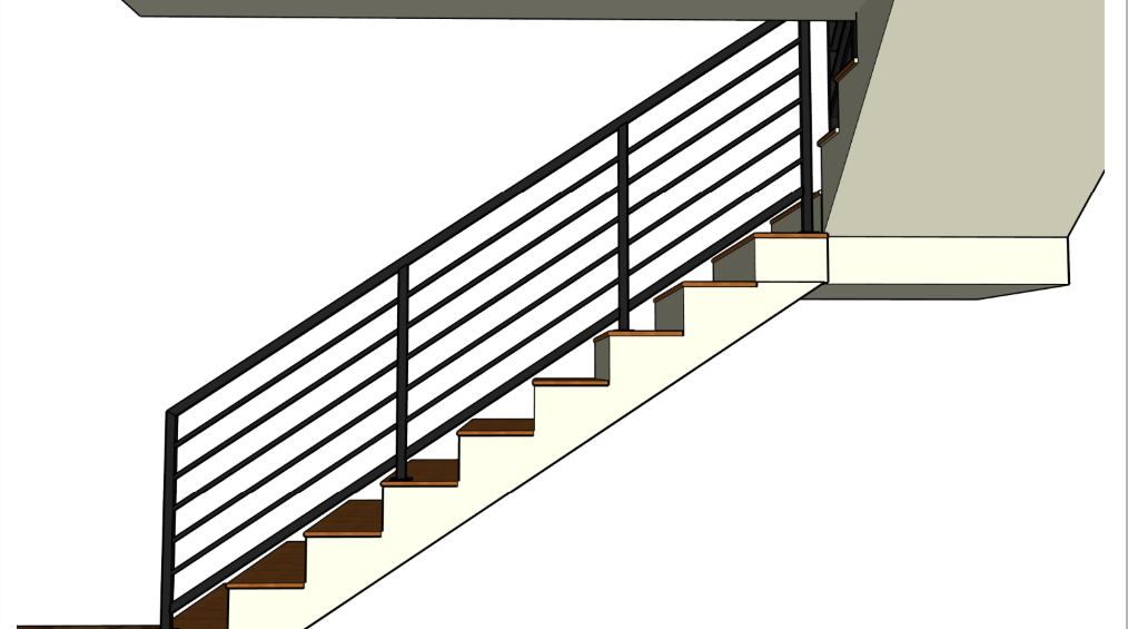 The new handrail includes a main rail measuring over 112" in length, built with 1-1/4" box tube for the top, bottom, and posts. Horizontal pickets were fabricated from 1" x 1/2" rectangular tubing, providing both strength and visual balance. Each post is secured with 3"x3" base plates and lag screws for a secure and lasting installation.